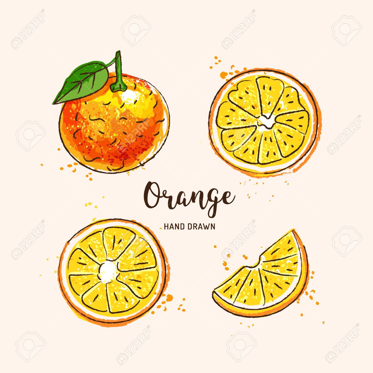 Orange Fruit Vector Drawing Summer Food Illustration Stock