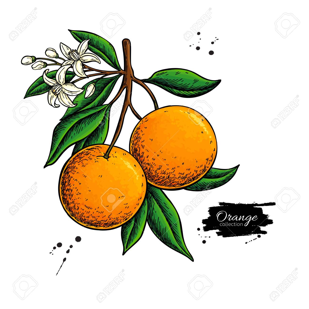 Orange Branch Vector Drawing Summer Fruit Color Illustration