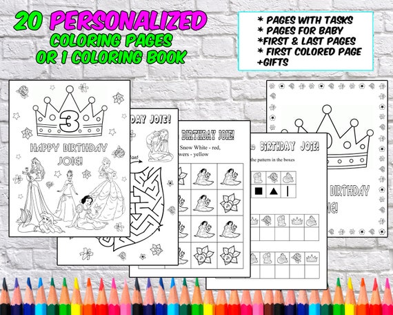 Disney Princess Birthday Party Disney Princess Coloring Etsy