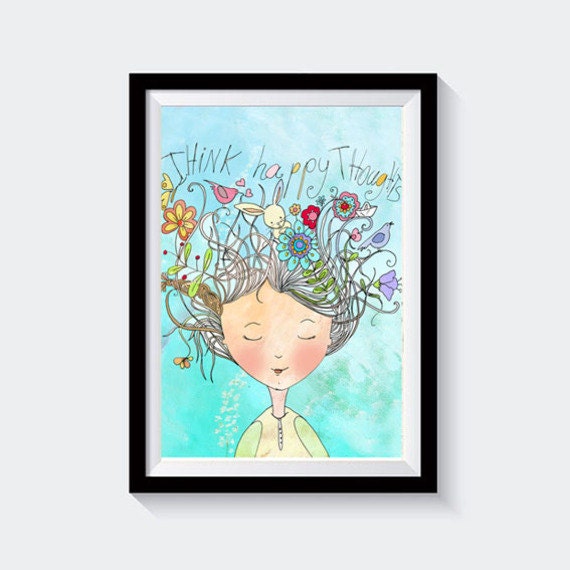 Colorful Poster Of Positive Thinking Wall Art Think Happy Etsy