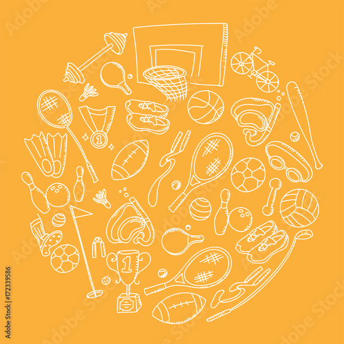 Sports Equipment Kids Hand Drawing Set Pattern Background Circle