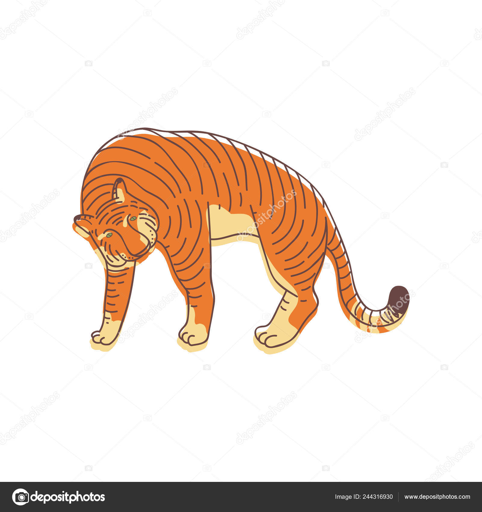 Kids Drawing Of Sitting Tiger Back View Wild Cat Vector Image
