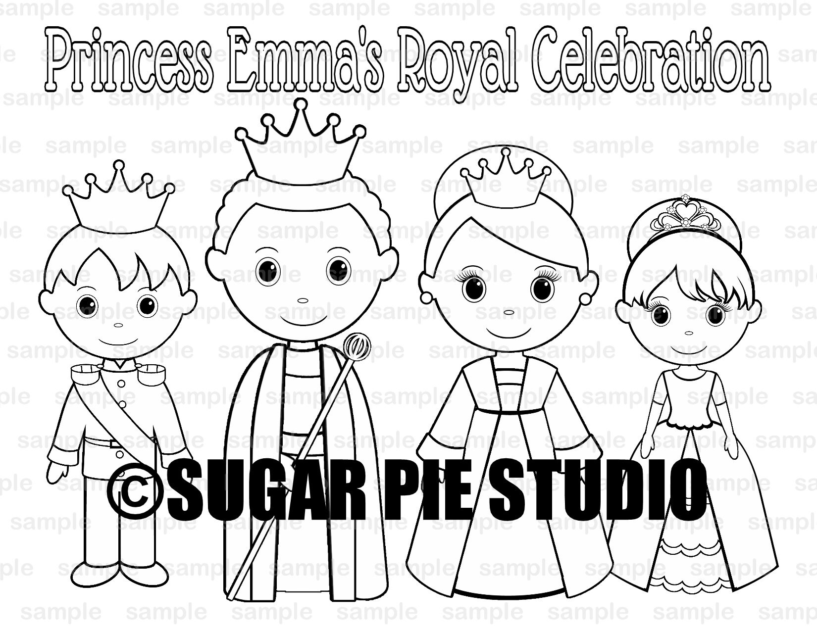 Princess Coloring Page Birthday Party Favor Digital Printable Pdf